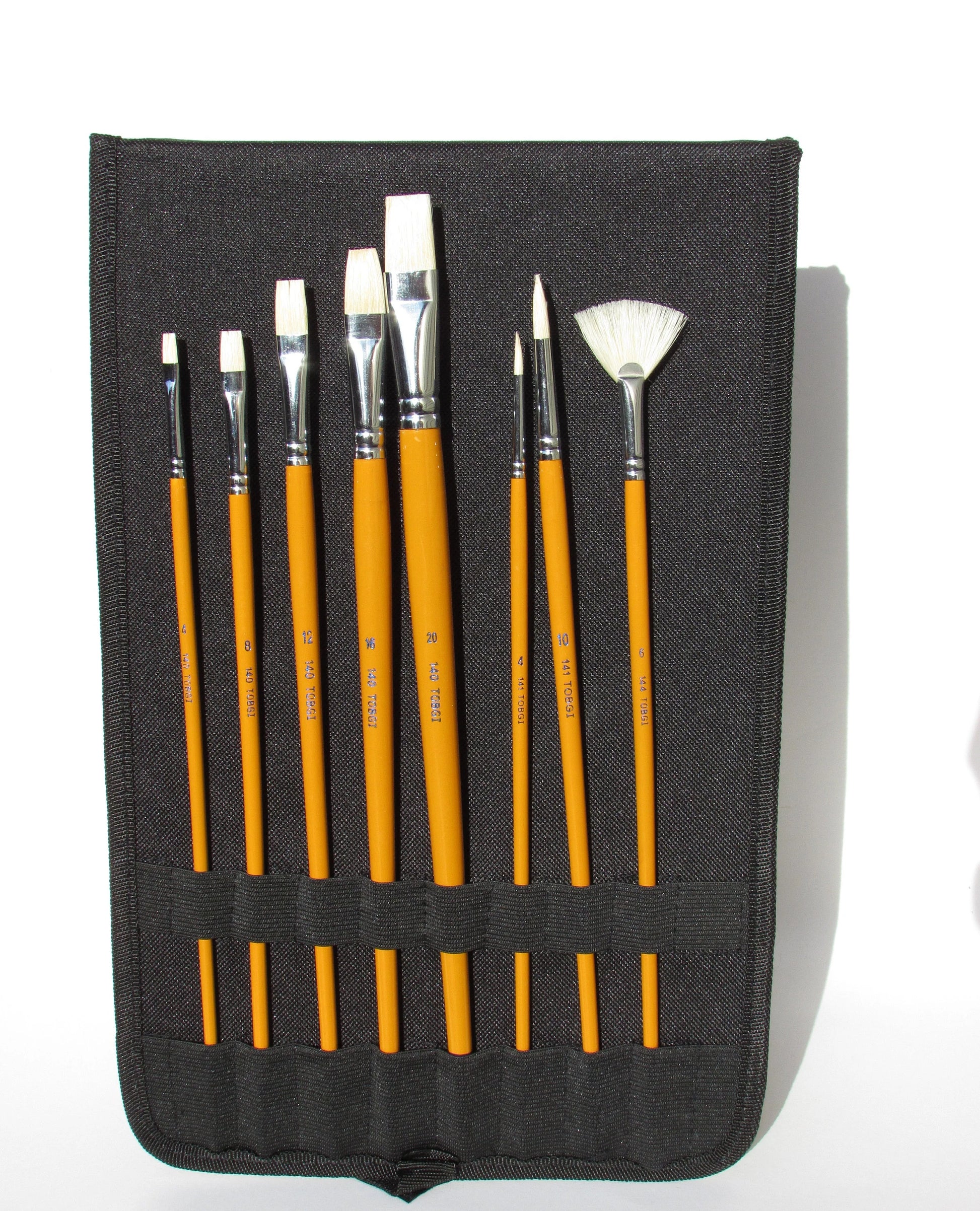 Ensemble de 8 pinceaux de qualité artistique à poils blancs pour huile et acrylique, manche long avec étui à pinceaux