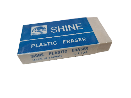 The Large Shine Plastic Eraser comes in a convenient pack of 12 . Designed for effortless erasing on various surfaces, including paper and film. With its generous size, it effectively removes pencil marks without damaging the paper, making it a favourite among students, artists, and professionals.